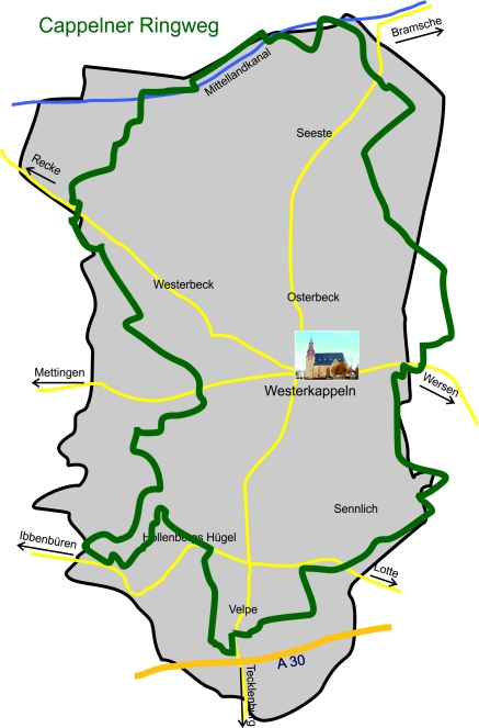 Der Cappelner Ringweg ermöglicht in seinem Verlauf eine Umrundung Westerkappelns. Er hat eine Gesamtlänge von 45,8 Kilometern.